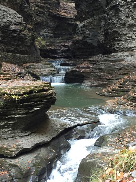 You have to wait until noon the next day to pick up your pieces, so we spent Sunday morning hiking at Watkins Glen. My knee managed all the steps without complaint.